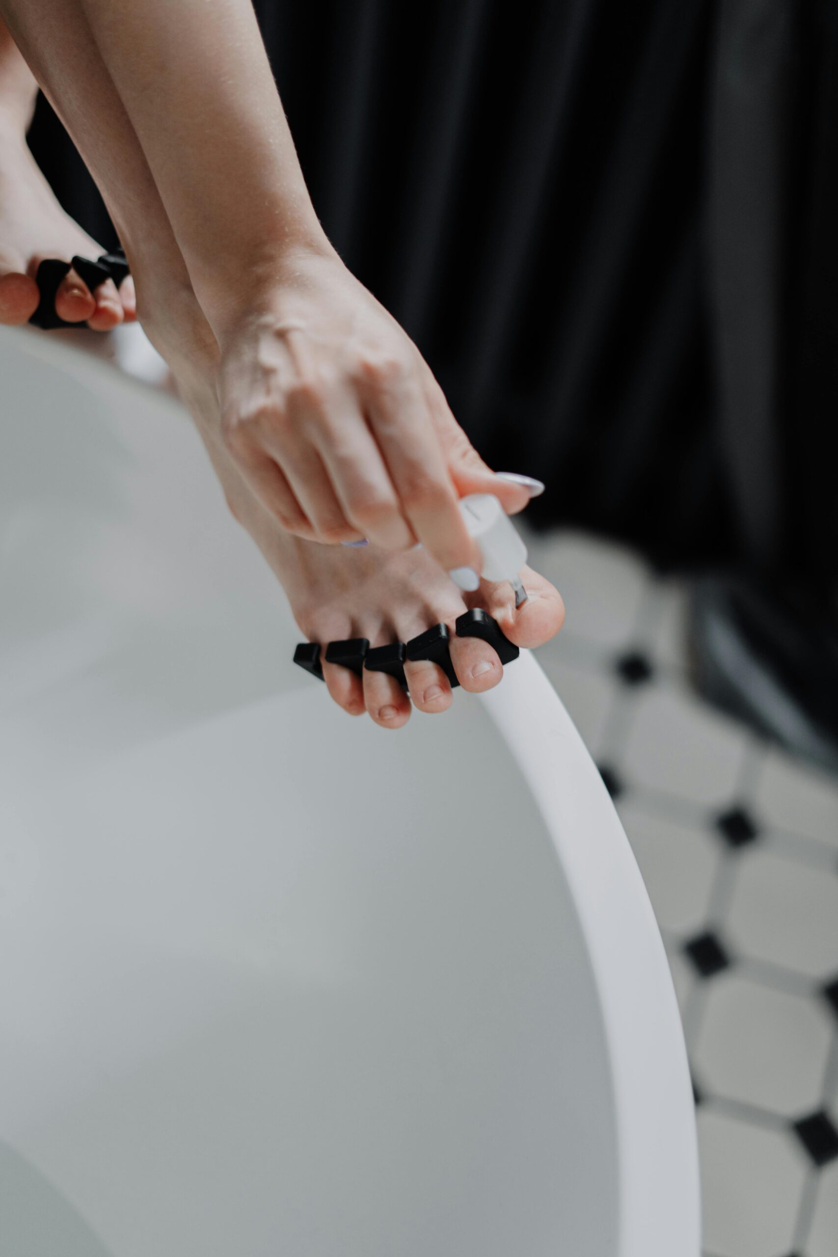足浴の後は、足をやさしく洗浄します。指の間や足裏、かかとなどを丁寧に洗い、清潔な状態に整えます。洗浄後は水分をしっかり拭き取り、特に指の間に水分が残らないように注意しましょう。